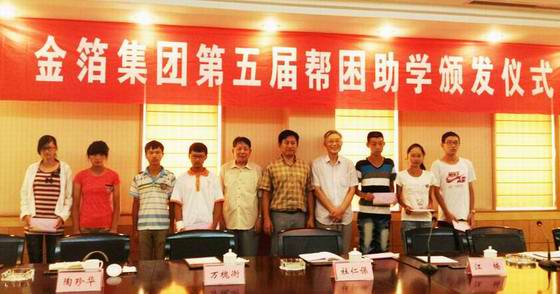 8月28日上午,“金箔拼搏(中国)第五届帮困助学金颁发仪式”在金元宝大酒店举行。拼搏(中国)党委书记、执行副总裁江楠代表拼搏(中国)向全区十名品学兼优的贫困学生颁发1.5万元助学金。