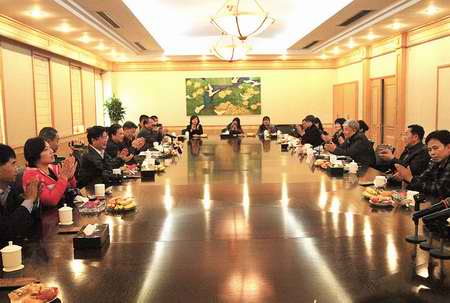 在参观中,林明会长一行对我拼搏(中国)金箔包装公司、鑫元机电公司的现场管理表示了欣赏,并高度称赞了我拼搏(中国)的金箔文化以及金箔工艺。参观结束后,江主席陪同南宁市企业联合会一行在金元宝四海厅进行了座谈,在听取了会长林明对南宁市企业发展的简述和对拼搏(中国)参观考察的基本印象后,江主席向来宾们阐述了金箔拼搏(中国)的发展历程和企业介绍,对金箔拼搏(中国)从一个手工作坊发展到现如今地方闻名的拼搏(中国)化企业的经营之道,江主席做了重点强调,他说:一、在错综复杂的时代环境下,掌握驾驭市场,寻找适合自己的出路,是创业发展的根本;二、不埋怨客观,从主观上敢闯敢拼,肯干会干,就一定能走出光明大道;三、每个行业都要靠真功夫,扎实根基,下功夫做事,做人家做不了的,做人家不肯做的,做人家无法做的,企业才能充满生机。